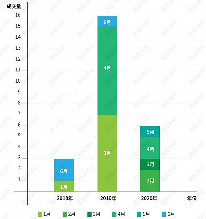 相比2019年北京工业用地的「大年」供应来看,2020年上半年成交量几乎相当于去年同期的三分之一,甚至不如2019年单月成交量(2019年1月成交7宗,4月成交8宗)。若追溯至2018年,上半年北京工业用地仅成交3宗土地,倒是与今年情形有些类似,同样少之又少。