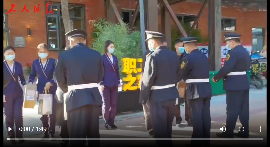 10月19日下午,北京市工业(国防)工会在首钢园服贸区内举行公共区域户外劳动者职工之家揭牌仪式。北京市总工会党组成员、副韩世春,首钢集团党委常委、工会、董事梁宗平等,为首钢集团的首钢园公共区域户外劳动者职工之家、京城机电的京城尚德智造产业园公共区域户外劳动者职工之家等6家工业国防系统公共区域户外劳动者职工之家,以及首钢集团的首钢茶缸户外劳动者暖心驿站、北汽集团的北京鹏龙星徽汽车销售服务有限公司户外劳动者暖心驿站等7家暖心驿站授牌,并为户外劳动者代表赠送爱心包。
