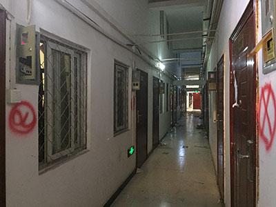 挑高15米的厂房被加盖成4层楼的出租屋,划分为ABCD四个区域。大小不一的房间内,都有简单的厨具可以明火做饭,但整栋楼只有一楼一条主通道能通往3个出口,存在严重的消防安全隐患。而这个厂区的7座厂房都被改造成了这样的公寓式出租屋。
