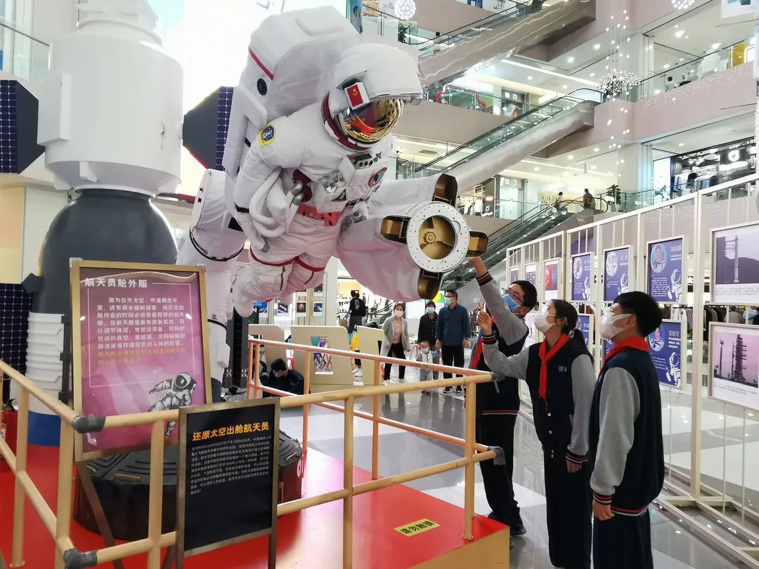 内容丰富的展览场景不仅令学生们欣喜不已,也吸引很多到商场购物的消费者驻足,纷纷用手机拍照留念。消费者卢女士表示:“真的很震撼,中国人在探索太空的征途中不断前行,彰显的不只是科研人员勇于探索的航天精神,更是大国底蕴和走在时代前沿的硬实力!”