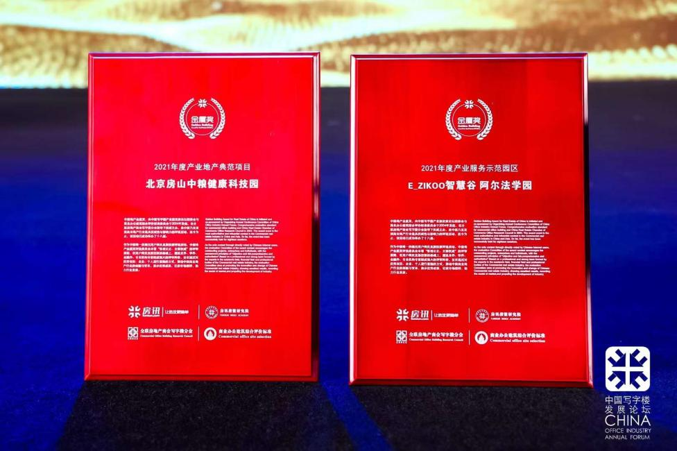 “北京房山中粮健康科技园”“E_ZIKOO智慧谷·阿尔法学园”获“中国地产金厦奖”