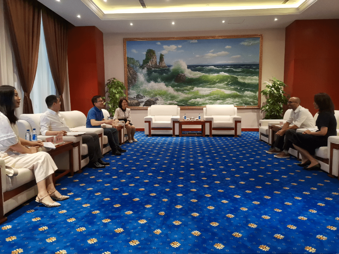 考察团一行介绍了德国巴登符腾堡州银行北京代表处和北京德国中心的发展需求,并希望加强与中德产业园在国际产业促进和成果转化等领域的合作。
