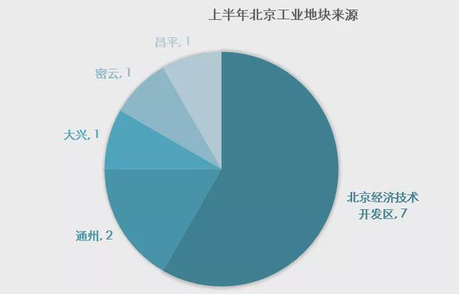 从区域看,上半年北京工业用地来自昌平、通州、大兴、密云和北京经济技术开发区(亦庄新城)5个区域,京南地区一如既往,是工业用地主要来源地。北京经济技术开发区以7宗土地,位列供应区域榜首;其次为通州,2宗土地;昌平、大兴、密云各有1宗土地成交。
