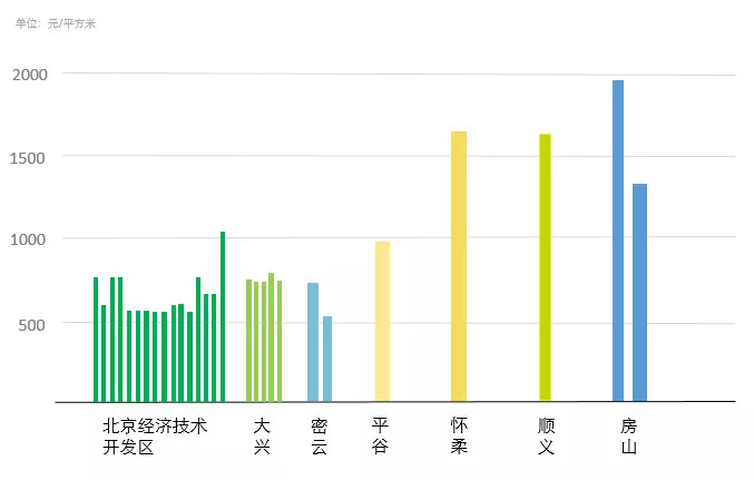 价格高地看房山。2020年共有2宗工业用地出让金额双双破亿,创造了年度最高成交额、最高楼面价的纪录。其中,京东方以1.38亿元拿下房山北京高端制造业基地6.4公顷研发土地,创造了全年最高成交额。另一宗过亿成交额同样出自房山,北京高端制造业基地投资开发有限公司1.1亿元摘地,规划建筑面积5.7万平方米,以每平方米约1929元的楼面价创下年度最高楼面价。以上2宗土地也是房山市场2020年挂牌出让的全部工业用地。