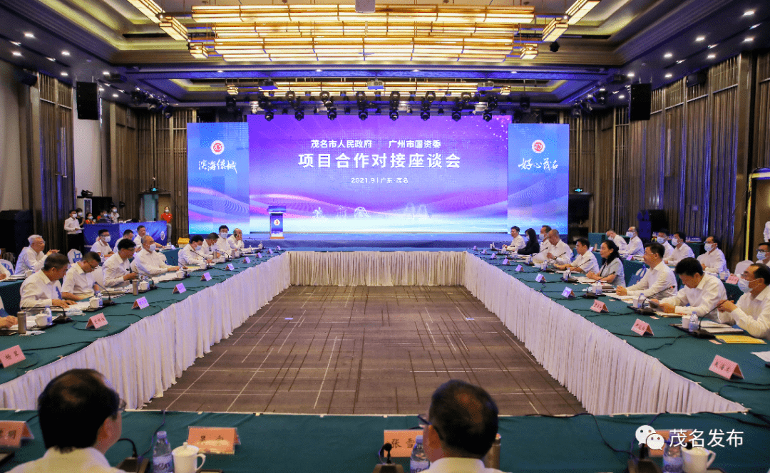 2021年9月23日至24日,广州市国资委组织广州市属国有企业到茂名开展项目合作对接工作。这是广州市国资委历次来茂考察活动中规模最大的一次、签约项目最多的一次,11家广州市属国有企业及旗下企业、创新联盟参与,其中包括3个世界500强企业。这次促成7项重要交流合作成果达成签约,首期项目投资额预计达到63亿元。