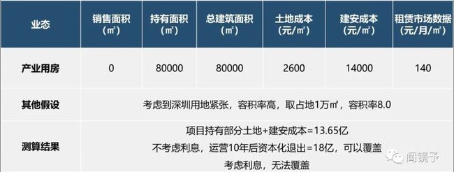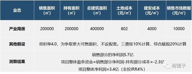对于实体企业,逻辑类似,无非自持部分自用为主,没有招商压力,其他可售部分算账类似。