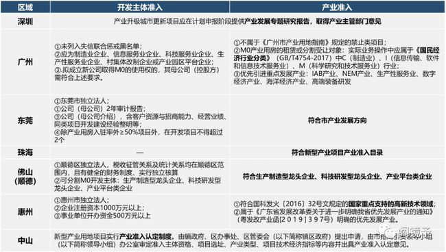 各地对M0开发主体设置了准入门槛,并明确提出产业准入条件,要么需要主管部门出具意见,要么详列产业门类。