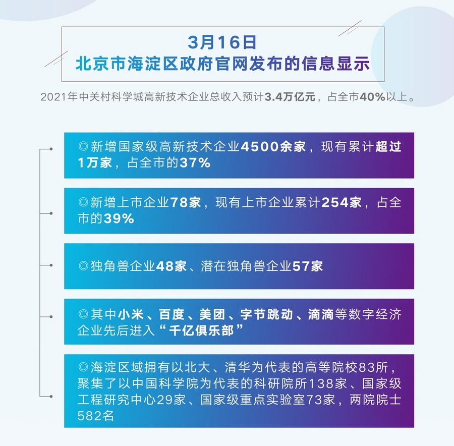 位于北京市建设“两轴两带多中心”的海淀科技创新中心,是中关村科技园区规划发展的重点项目之一,也是中关村高新技术成果转化和产业化的重要平台。将重点发展集成电路、新材料、空天科技等产业,入驻企业数量共计472家,总产值约400亿元。