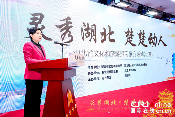 国际在线日,湖北省文化和旅游厅、湖北省人民政府驻北京办事处在北京湖北大厦成功举办湖北文化和旅游北京招商推介会。活动以“灵秀湖北 楚楚动人”为主题,来自中国青旅集团、北斗航天卫星应用科技集团、国开城市交通投资发展基金、北辰集团、高德地图、阿里巴巴、腾讯、中国文化传媒集团等近百家世界500强企业、中国文化企业30强、文旅上市企业、优秀楚商代表受邀参加了推介活动。
