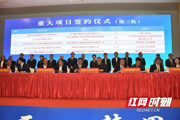 推介会上,湘西州与京津冀地区企业签约合同项目20个,总投资额123.2亿元。